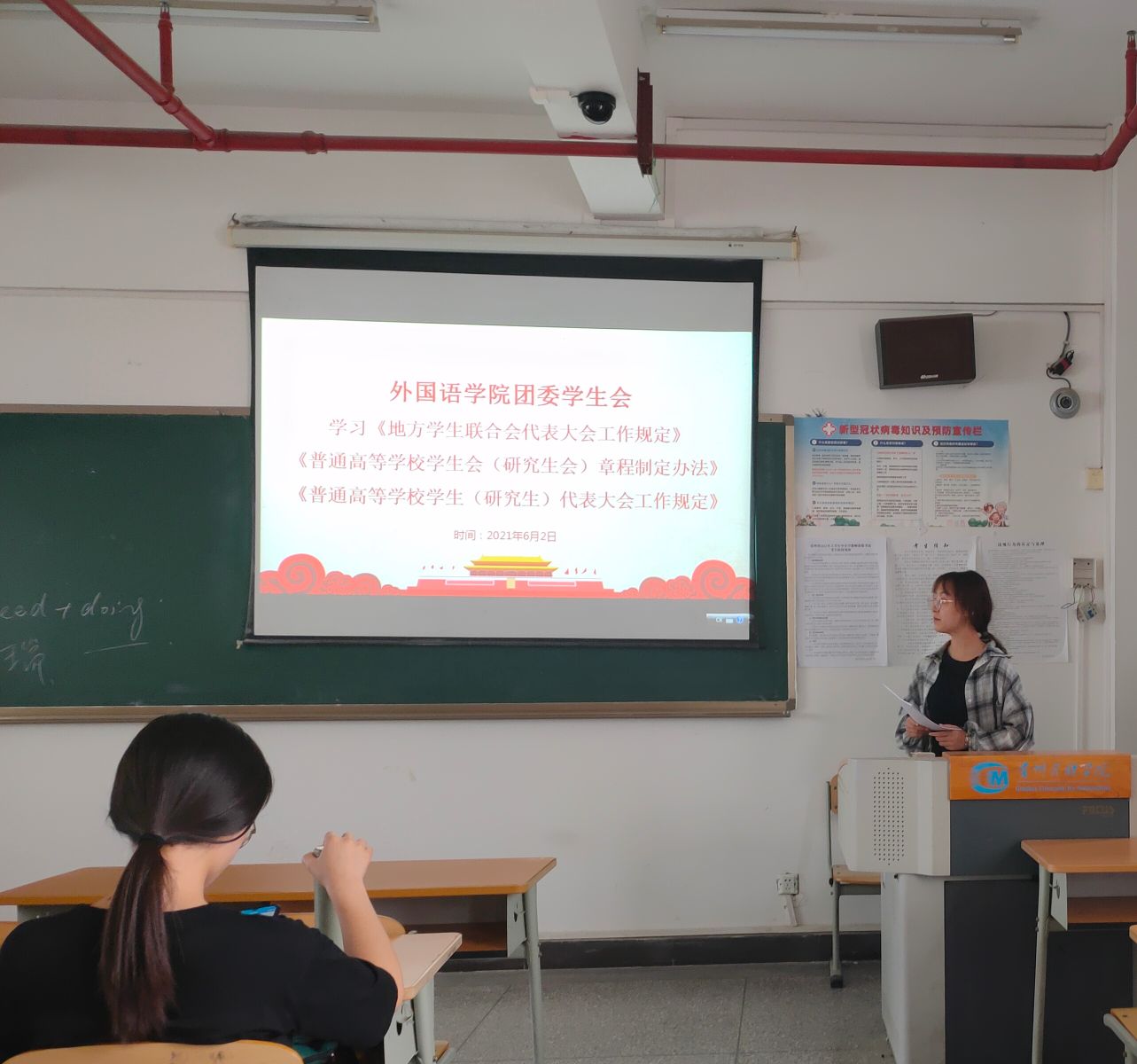 为响应国家的号召,使广大青年学生学习领会党中央关于青联、学联工作一系列指示精神,2021年6月2日,我院于15-408教室,组织召开《地方学生联合会代表大会工作规定》、《普通高等学校学生会(研究生会)章程制定办法》、《普通高等学校学生(研究生)代表大会工作规定》等文件集体学习会。本次会议由我院团委学生会全体成员参加,主席团成员吴思云主讲。