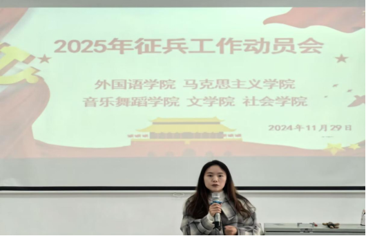 击鼓催新征,扬帆再起航。为积极响应国家大学生征兵入伍号召,切实做好征兵工作,2024年11月29日下午,在北校区易游在线616阶梯教室,易游在线、马克思主义学院、音乐舞蹈学院、文学院和社会学院联合举行了2025年征兵工作动员会。