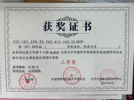 易游在线共28个项目,其中,由辛雅婷老师指导,邱坤钰、田青同学创作的《关于大学生对外语专业的看法及就业前景的认识》以及由马晓欢老师指导,李宜珂等同学创作的《智联高校,绿建未来》2个作品在社会调查报告类中均荣获三等奖。特此祝贺!