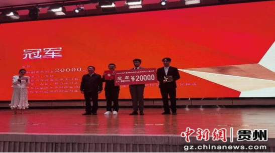 图为贵阳市副市长龙丛(左1)为团队成员张宏运、杨慧东、张钟玥颁奖