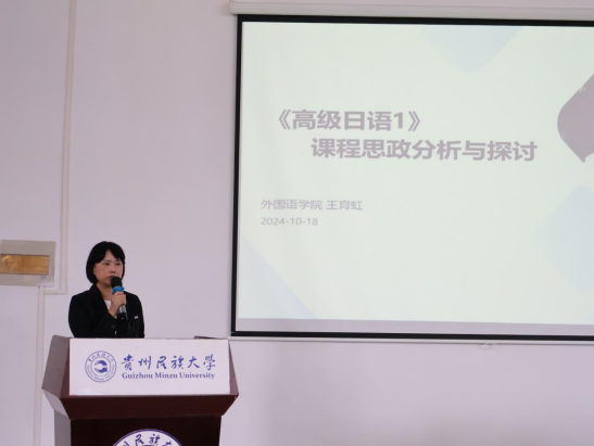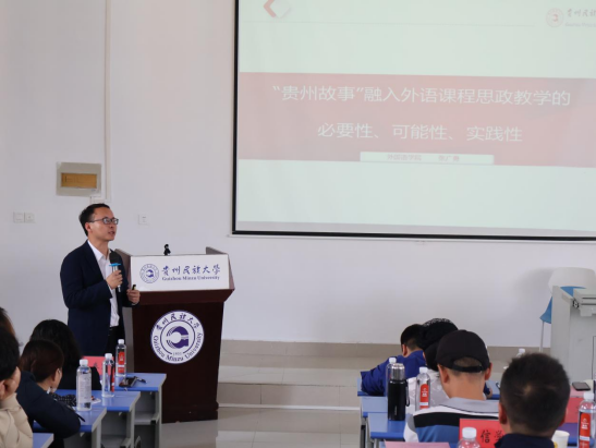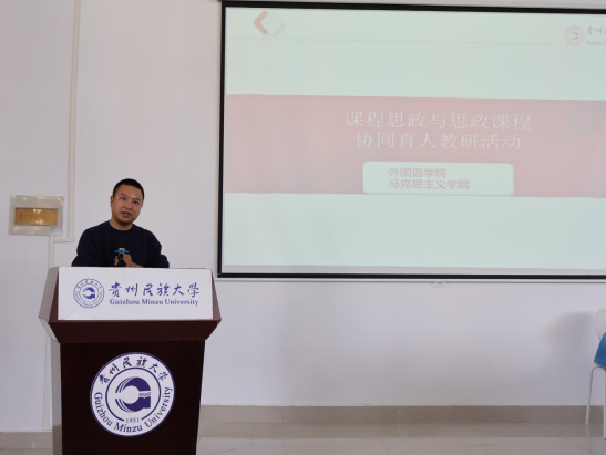 教研活动上,易游在线院长张广勇教授领学《高等教育课程思政建设指导纲要》;教务处处长张乾教授解读了学校课程思政教学要求;易游在线朱颖、杜晖、王育虹、杨筱松老师分别围绕《综合英语》《大学英语》《高级日语》《少数民族文化英译》等介绍课程思政教学开展情况;张广勇院长以“贵州故事”融入外语课程思政教学的必要性、可能性和实践性为题,总结易游在线课程思政教学的成果,同时也提出了总体思路和展望。