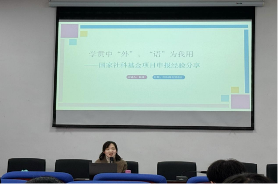 全球化日益加深的今天,语言不仅是沟通交流的工具,更是文化传承与创新的重要载体。为了深入探讨如何在学术研究与国际交流中更好地融合中外语言文化,促进学术创新与发展,12月6日,我院邀请国际教育学院(东盟人文学院)副教授赵瑾博士为全院教师开展题为“学贯中外,语为我用”专题讲座,分享国家社科基金项目申报经验。赵瑾博士主持2024年国家社科基金项目《泰国国家档案馆藏泰文涉南海史料文献整理、翻译与研究》等项目5项。