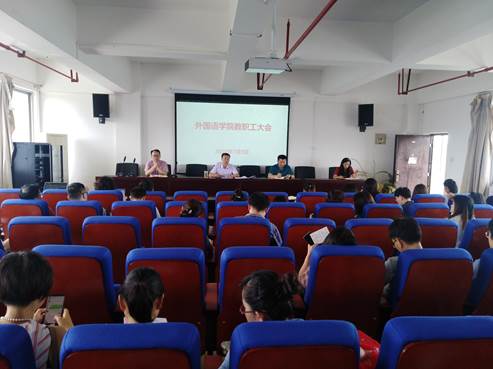 第三,张广勇副院长从2019—2020学年度夏学期工作开展特别是专业教学和公共外语的排课、老师的科研等进行了总结,希望各位老师要有担当和奉献精神,积极承担学校和学校安排的教学工作量,不断提升自身教学能力和科研水平。