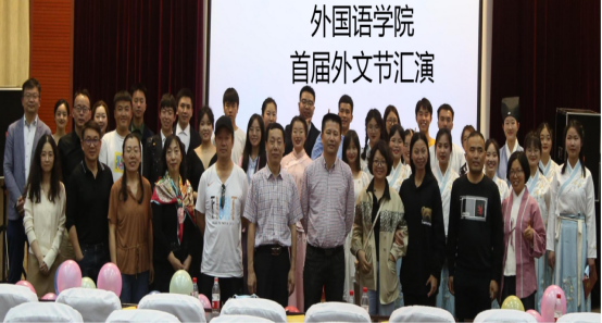 在中国共产党成立100周年之际,易游在线全体师生于2021年5月8日晚19点至22点,在花溪校区15号楼圆形会议中心成功举行了首届“外文节”文艺汇演活动,用外语(英语、日语、德语、法语)演绎传统文化、讲述党的故事、表演红色剧目。当晚莅临会场指导的还有校党委宣传部副部长邹璿老师、校党委学生工作部舒启佳老师等。