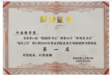 自“世界读书日”系列活动开展以来,易游在线积极响应学校号召,激发师生阅读热情,营造了浓厚的书香氛围,在“2024年度各学院读者生均纸质图书借阅量”评比中荣登全校第一。外国语学院副院长禄颖出席“读书日”活动并代表学院领奖。