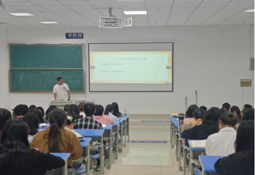首先,易游在线党委副书记杨泰黔致辞。她指出,考研是一块敲门砖,提供了更多的选择和机会。大学生要勇于挑战自我,不畏艰难,积极准备考研,为自己的未来铺就一条光明的道路。她希望同学们能够提前规划,明确目标,充分利用大学时光,为未来的考研和职业发展打下坚实的基础。