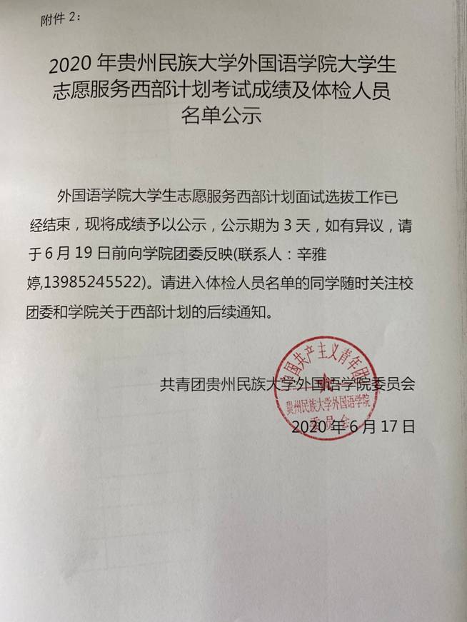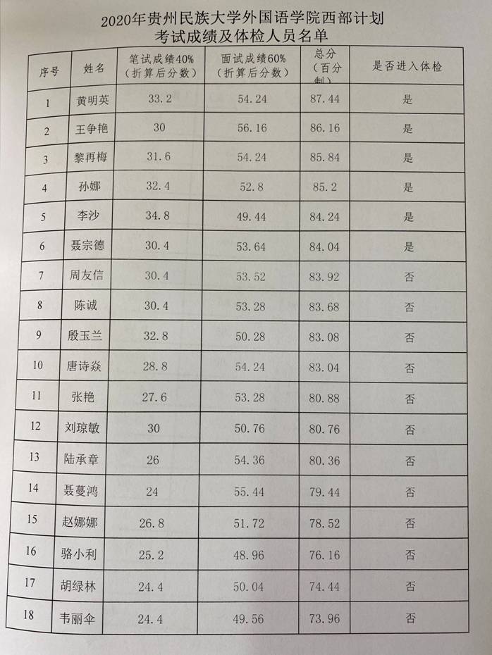 2020年易游在线大学生志愿服务西部计划考试成绩及体检人员名单公示